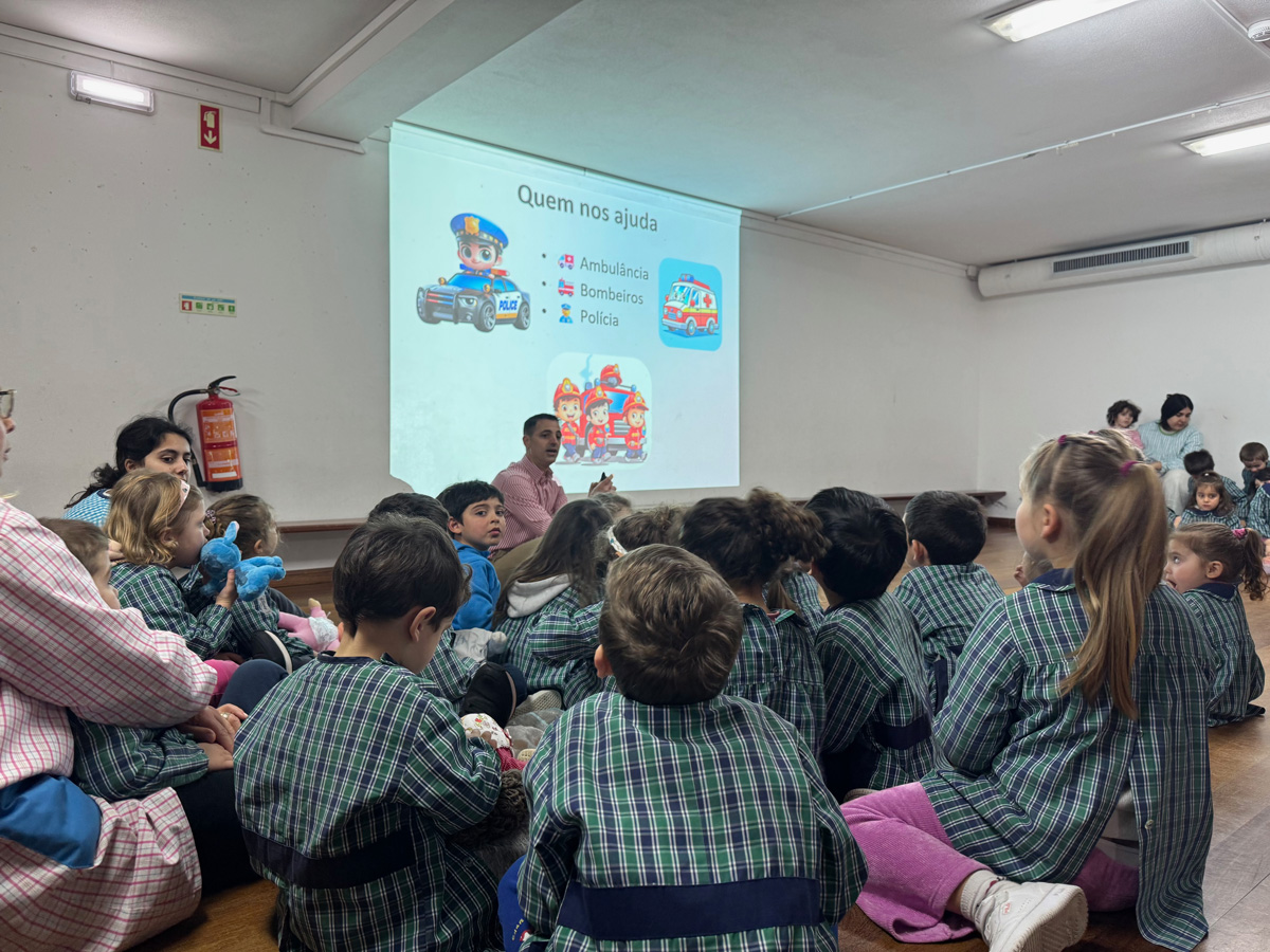 Durante a sessão, as crianças foram incentivadas a reconhecer a importância de pedir ajuda perante situações de perigo e ficaram a conhecer o número europeu de emergência 112, bem como o papel dos profissionais que respondem a estas chamadas.